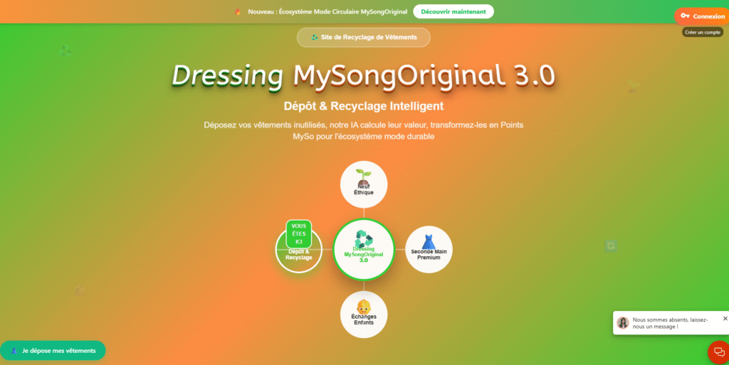 Depuis 10 ans, je développe Dressing MySongOriginal 3.0, un écosystème complet dédié à l’économie circulaire de la mode. Un projet ambitieux qui m’a tout appris : création de sites WordPress, développement PrestaShop, modules personnalisés, stratégie digitale et community management.